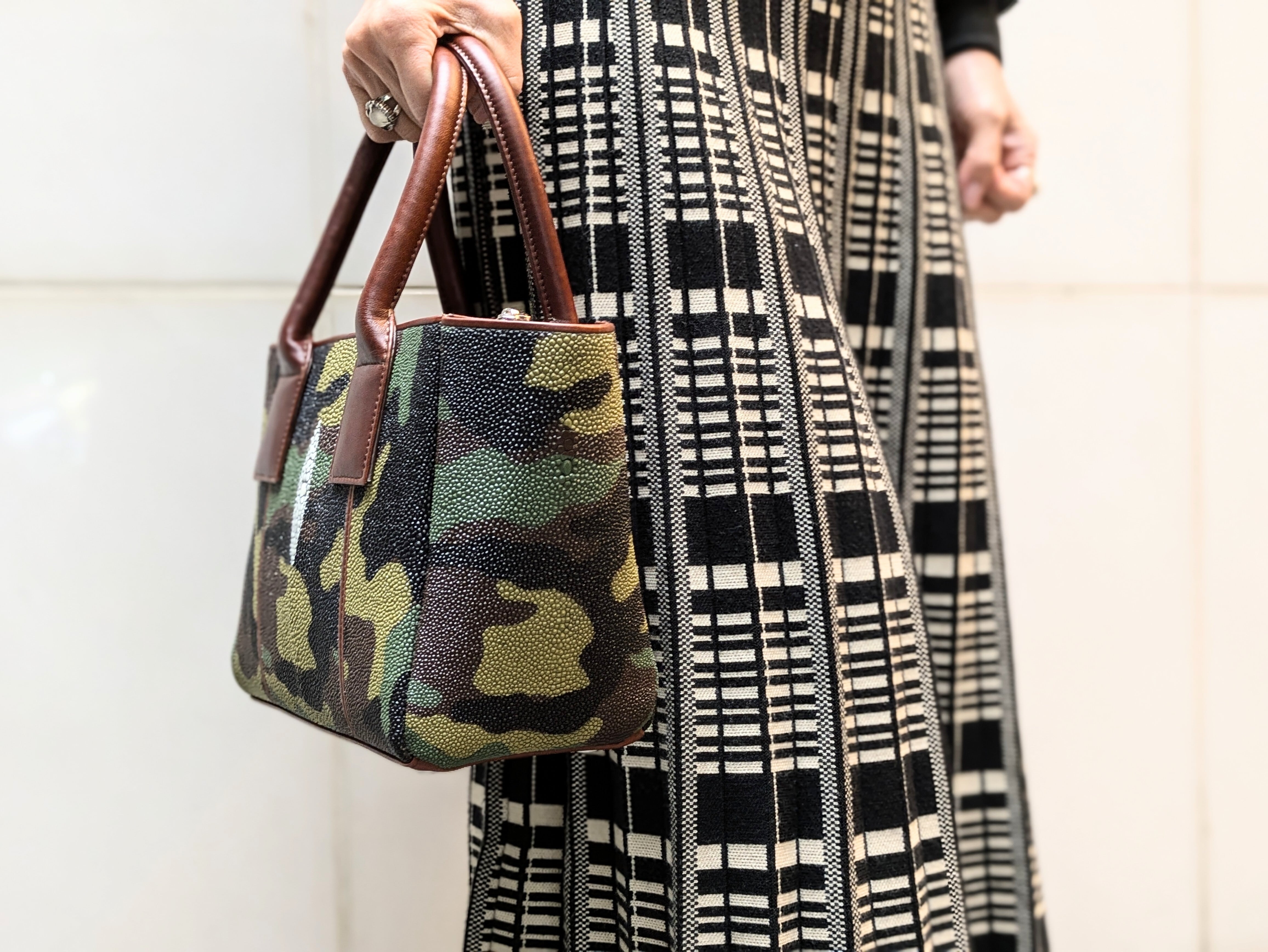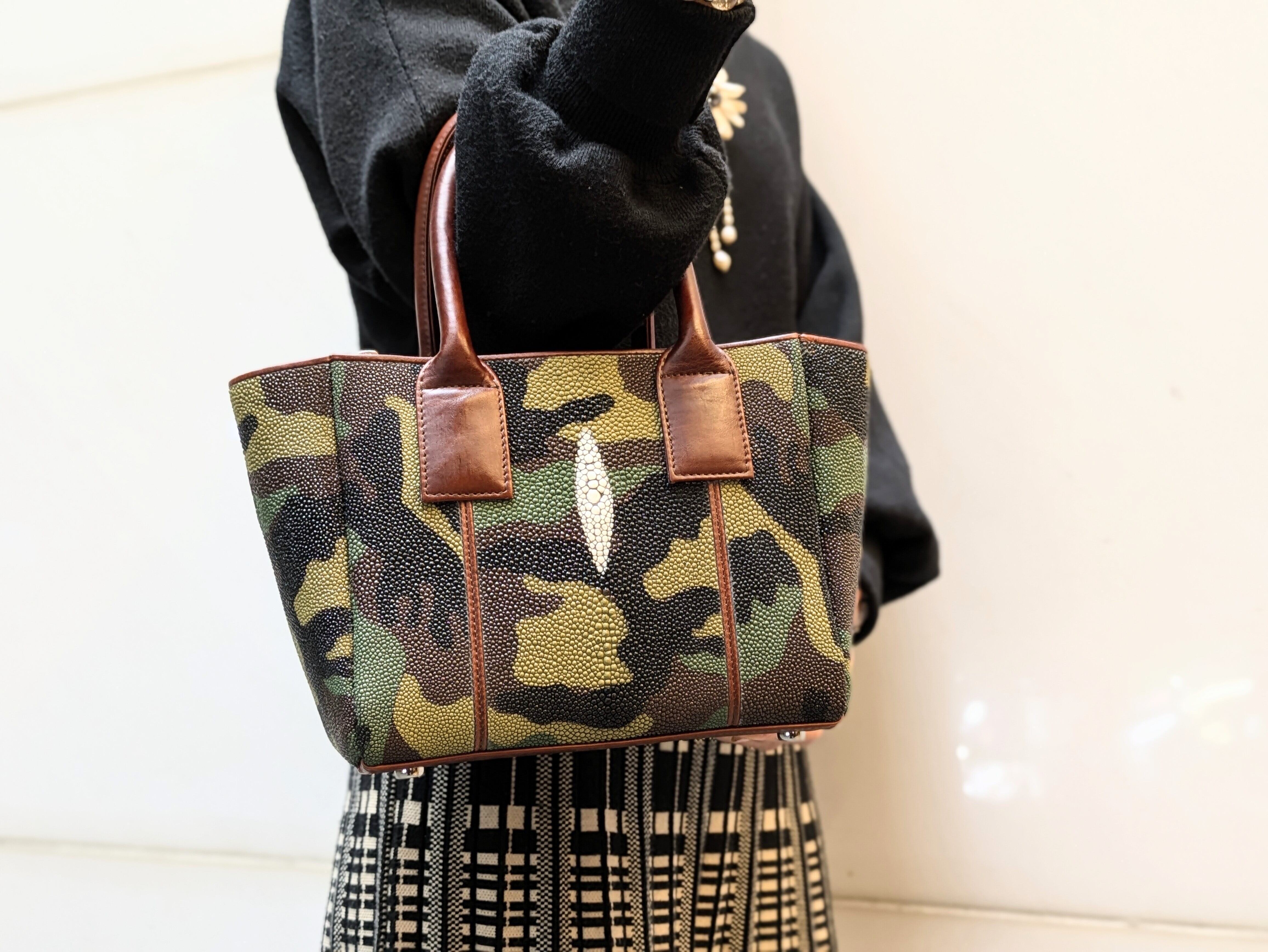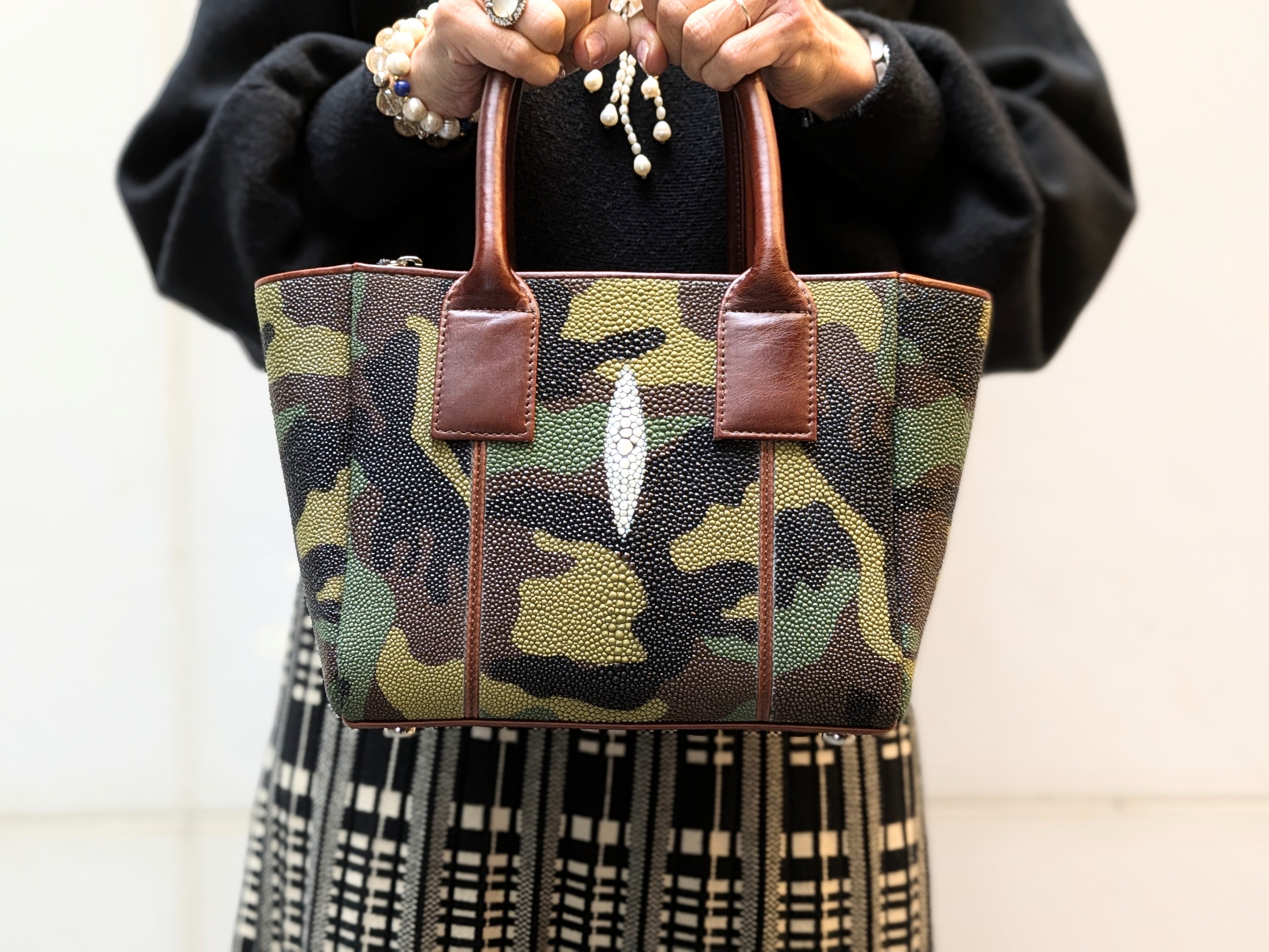 "海の宝石"と言われるガルーシャ(エイ革)を贅沢に使用した小さめレクタンバックです。